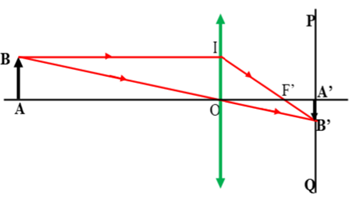 Ta có: \(\Delta OAB \sim \Delta OA'B' \Rightarrow \dfrac{{AB}}{{A'B'}} = \dfrac{{OA}}{{OA'}} \Rightarrow A'B' = \dfrac{{AB.OA'}}{{OA}}\)