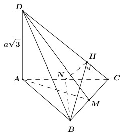 Cho tứ diện ABCD có AD vuông góc với AC, AB. Biết \(\Delta ABC\) đều cạnh a, \(AD = a\sqrt 3 \).