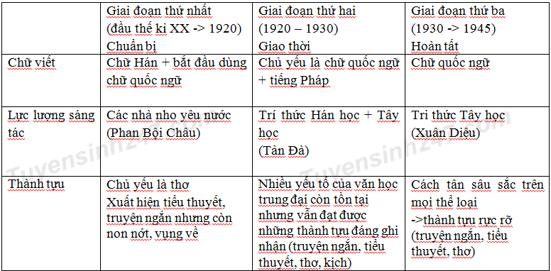 Trình bày quá trình hiện đại hóa trên các phương diện chữ viết, lực lượng sáng tác, thành