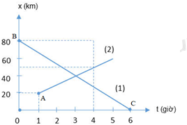 Cho đồ thị của hai người đi xe đạp trên một đường thẳng được vẽ trên hình