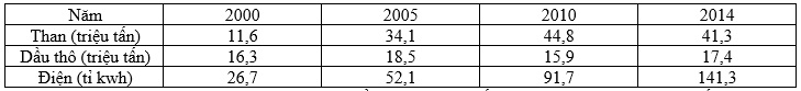 Cho bảng số liệu: SẢN LƯỢNG THAN DẦU THÔ VÀ ĐIỆN CỦA NƯỚC TA (Nguồn: Niên giám thống