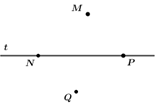 a) Vẽ đường thẳng \(t\). Vẽ \(M \notin t,\,\,N \in t,\,\,P \in t,\,\,Q \notin t\).