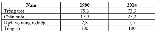 Cho bảng số liệu: Cơ cấu giá trị sản xuất nông nghiệp (theo giá thực tế) phân theo ngành