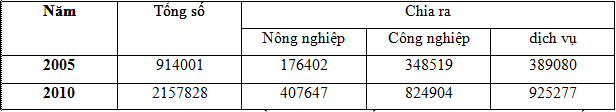 Cho bảng số liệu: Tổng sản phẩm trong cả nước phân theo khu vữ kinh tế của cả nước