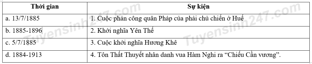 Dựa vào bảng dưới đây, hãy chọn đáp án đúng về mối quan hệ giữa mốc thời gian cột bên trái và sự kiện lịch sử ở cột bên phải