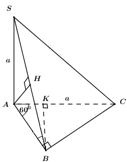 Cho hình chóp S.ABC có đáy ABC là tam giác vuông tại B có AC = a, \(\angle BAC = {60^0}\). SA = a và vuông góc với đáy, \(\angle SBC = {60^0}\). Tính: