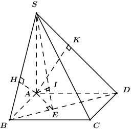 c) Trong (ABCD) kẻ \(AE \bot BD\,\,\left( {E \in BD} \right)\). Trong (SAE) kẻ \(AI \bot SE\,\,\left( {I \in SE} \right)\). Chứng minh \(AI \bot \left( {SBD} \right)\). Sử dụng hệ thức lượng trong tam giác vuông để tính AI.