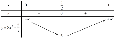 Có bao nhiêu giá trị nguyên dương của \(m\) để hàm số \(y = \dfrac{8}{3}{x^3} + 2\ln x - mx\) đồng biến trên \(\left( {0;\,\,1} \right).\)