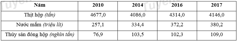 Theo bảng số liệu, để thể hiện tốc độ tăng trưởng sản lượng một số sản phẩm công nghiệp của nước ta giai đoạn 2010 - 2017, dạng biểu đồ nào sau đây là thích hợp nhất?