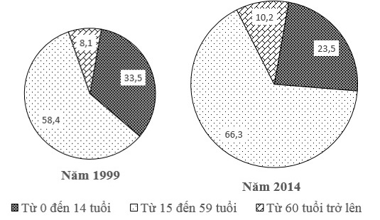 Cho biểu đồ về dân số nước ta năm 1999 và 2014: