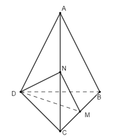 Cho tứ diện đều \(ABCD\), \(M\) là trung điểm của cạnh \(BC\). Khi đó \(\cos \left( {AB,\,DM} \right)\) bằng