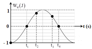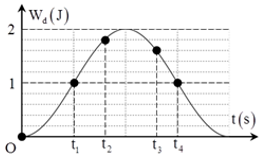 Một con lắc lò xo đang dao động điều hòa. Hình bên là đồ thị biểu diễn sự phụ thuộc của động năng \({{\rm{W}}_d}\) của con lắc theo thời gian \(t\). Biết \({t_3} - {t_2} = 0,25s\). Giá trị của \({t_4} - {t_1}\) là