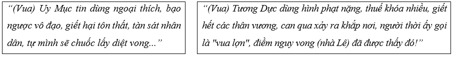 Cho 2 đoạn tư liệu lịch sử dưới đây, em hãy nhận xét về hai vị vua cuối triều Lê sơ và tình cảnh nước ta lúc bấy giờ: