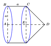 Cho hình thang \(ABCD\) vuông tại \(A,\,\,B\) và \(AB = BC = a\), \(AD = 2a\). Quay \(ABCD\) quanh cạnh \(AD\)