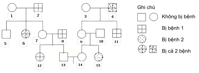 Sơ đồ phả hệ dưới đây mô tả hai bệnh di truyền ở người. Biết rằng mỗi bệnh do một