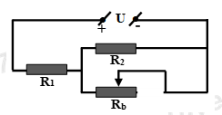 Một biến trở \({R_b}\) có giá trị lớn nhất là \(30\Omega \) được mắc với hai điện trở