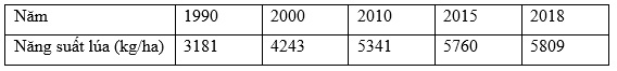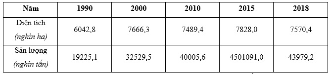 Cho bảng số liệu: DIỆN TÍCH VÀ SẢN LƯỢNG LÚA CẢ NĂM CỦA NƯỚC TA, GIAI ĐOẠN 1990 –