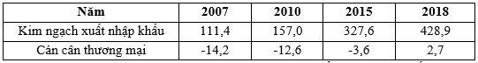 Kim ngạch xuất nhập khẩu và cán cân thương mại của nước ta giai đoạn 2007 - 2018