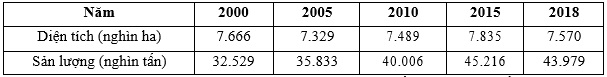 Cho bảng số liệu sau. Diện tích và sản lượng lúa nước ta giai đoạn 2000 - 2018 ( Nguồn: Niên