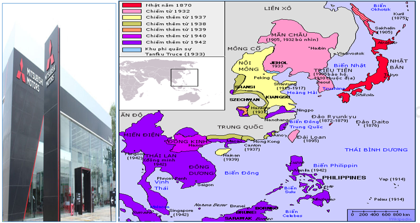 Quan sát hình ảnh, lược đồ dưới đây, kết hợp với kiến thức đã học, hãy chứng minh Nhật Bản đã chuyển sang giai đoạn đế quốc chủ nghĩa từ cuối thế kỉ XIX – đầu thế kỉ XX.