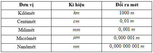Đổi: \(1\,\,m = 10\,\,dm = 100\,\,cm = 1000\,\,mm\)