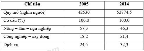 Cho bảng số liệu: QUY MÔ VÀ CƠ CẤU LAO ĐỘNG CÓ VIỆC LÀM Ở NƯỚC TA GIAI ĐOẠN 2005