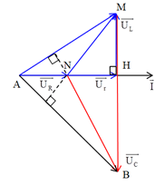 Đặt một điện áp xoay chiều \(u = U\sqrt 2 cos\left( {\omega t} \right)\) vào hai đầu mạch điện AB mắc nối tiếp theo thứ tự gồm điện trở R, cuộn dây không thuần cảm (L,r) và tụ điện (C), với \(R = r\). Gọi N là điểm nằm giữa điện trở R và cuộn dây, M là điểm nằm giữa cuộn dây và tụ điện. Điện áp tức thời \({u_{AM}}\) và \({u_{NB}}\) vuông pha với nhau và có cùng một giá trị hiệu dụng là \(30\sqrt {10} V\). Giá trị của U là