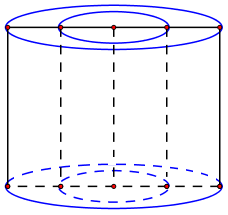 Thể tích hình trụ có bán kính đáy \(r\) và chiều cao \(h\) là: \(V = \pi {r^2}h.\)
