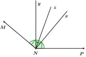 - Nếu tia \(Oy\) nằm giữa hai tia \(Ox\)và \(Oz\) thì \(\angle xOy + \angle yOz = \angle xOz.\) Ngược lại, nếu \(\angle xOy + \angle yOz = \angle xOz\) thì tia \(Oy\) nằm giữa hai tia \(Ox\)và \(Oz\).