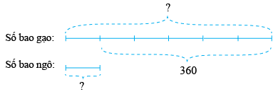 Một cửa hàng có số bao ngô ít hơn số bao gạo là 360 bao. Tính số bao mỗi loại. Biết rằng