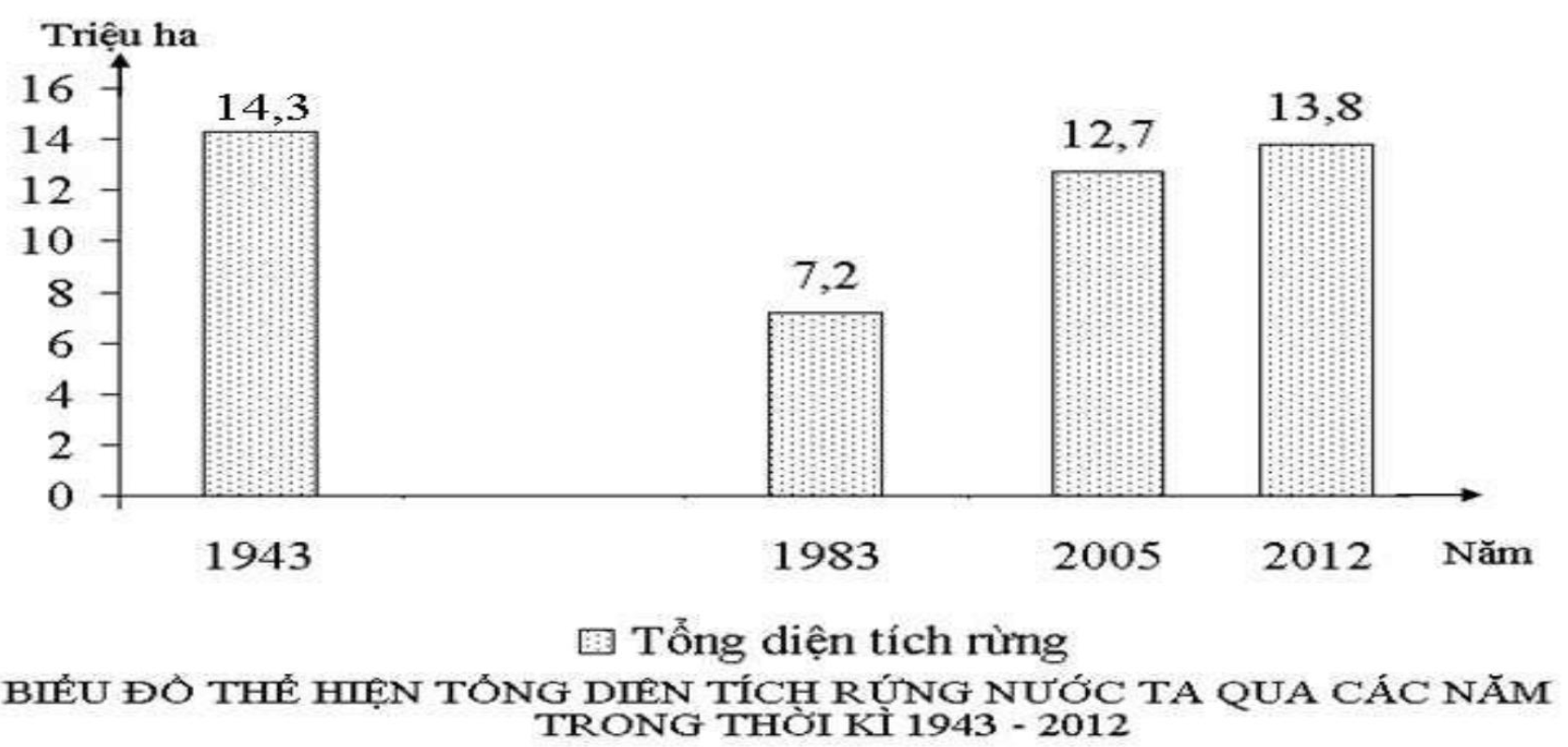 Cho biểu đồ sau: Nhận định nào không đúng về diện tích rừng của nước