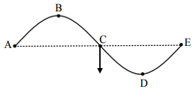 Một sóng ngang truyền trên bề mặt với tân số f = 10Hz. Tại một thời điểm nào đó một phần mặt cắt của nước có hình dạng như hình vẽ. Trong đó khoảng cách từ vị trí cân bằng của A đến vị trí cân bằng của D là 60cm và điểm C đang đi xuống qua vị trí cân bằng. Chiều truyền sóng và tốc độ truyền sóng là: