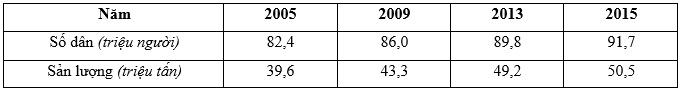 Cho bảng số liệu: SỐ DÂN VÀ SẢN LƯỢNG LƯƠNG THỰC CÓ HẠT NƯỚC TA GIAI ĐOẠN 2005 -