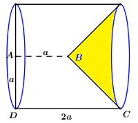 Cho hình thang ABCD vuông tại A và D với \(AB = AD = \dfrac{{CD}}{2} = a\). Quay hình thang và miền trong