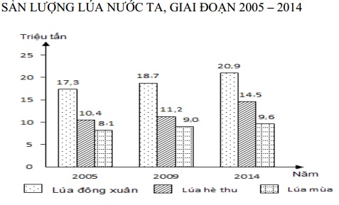 Nhận xét nào sau đây không đúng về sản lượng lúa nước ta giai đoạn 2005 - 2014?