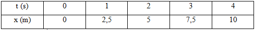 Chất điểm chuyển động trên đường thẳng, vật xuất phát từ gốc tọa độ chuyển động theo chiều dương, tại các thời điểm khác nhau vật có vị trí tọa độ như bảng dưới:
