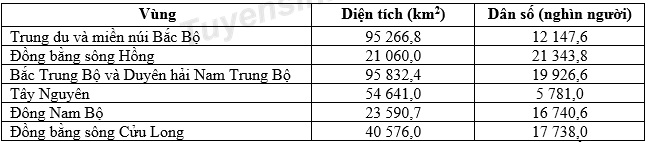 Cho bảng số liệu: DIỆN TÍCH VÀ DÂN SỐ CÁC VÙNG TRÊN CẢ NƯỚC NĂM 2017 Biểu đồ thích hợp