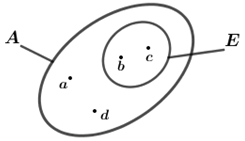 Cho tập hợp: \(A = \left\{ {a;\,\,b;\,\,c;\,\,d} \right\}\). Sử dụng biểu đồ Ven để xác định tập hợp \(E\) biết \(E \subset A\), \(E \ne \emptyset \), \(a \notin E\); \(d \notin E\).