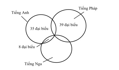 Trong một hội nghị có \(100\) đại biểu tham dự, mỗi đại biểu nói được một hoặc hai trong ba thứ tiếng: Nga, Anh hoặc Pháp. Có \(39\) đại biểu chỉ nói được tiếng Anh, \(35\) đại biểu chỉ nói được tiếng Pháp, \(8\) đại biểu nói được cả tiếng Anh và tiếng Nga. Hỏi có bao nhiêu đại biểu chỉ nói được tiếng Nga?