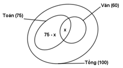 Trong số \(100\) học sinh có \(75\) học sinh thích học Toán, \(60\) học sinh thích học Văn.