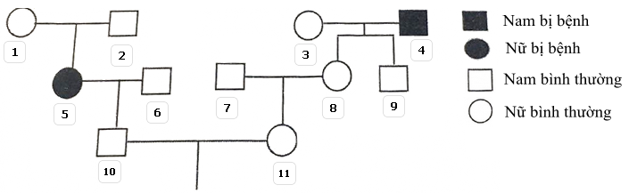 Phả hệ sau đây mô tả sự di truyền của một bệnh ở người do 1 trong 2 alen của 1 gen quy