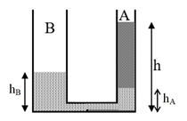 Hai bình hình trụ A và B đặt thẳng đứng có tiết diện lần lượt là \(100\,\,c{m^2}\) và