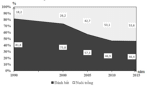 Cho biểu đồ về thủy sản của nước ta giai đoạn 1990 - 2015: