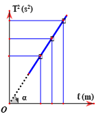 Chu kì dao động điều hòa của con lắc đơn: \(T=2\pi \sqrt{\frac{l}{g}}\Rightarrow {{T}^{2}}=4{{\pi }^{2}}.\frac{l}{g}\)