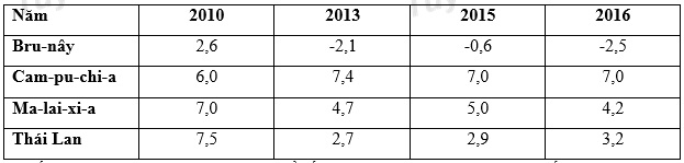 Cho bảng số liệu Tốc độ tăng GDP của một số nước Đông Nam Á, giai đoạn 2010-2016 (Đơn