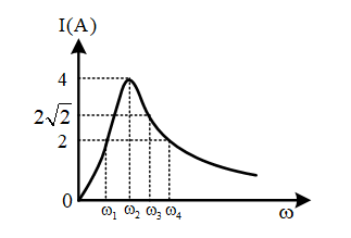 Đặt điện áp \(u = U\sqrt 2 \cos \left( {\omega t + \dfrac{\pi }{6}} \right)\) (\(U\) không đổi, \(\omega \) thay đổi được) vào hai đầu đoạn mạch có \(R,L,C\) mắc nối tiếp. Đồ thị hình bên biểu diễn cường độ hiệu dụng của dòng điện trong đoạn mạch phụ thuộc vào tần số góc \(\omega \). Gọi \({i_1},{i_2},{i_3}\) và \({i_4}\) là cường độ dòng điện tức thời tương ứng với \(\omega \) có các giá trị \({\omega _1},{\omega _2},{\omega _3}\) và \({\omega _4}\). Hệ thức nào sau đây đúng?