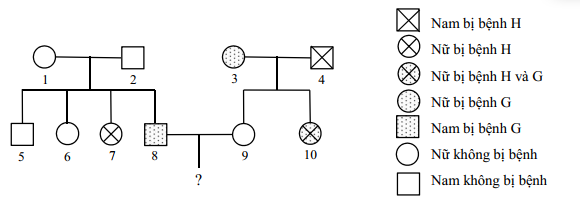 IV. Cặp vợ chồng số 8 – 9 sinh con bị bệnh H với xác suất cao hơn sinh con bị bệnh G.