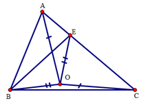 Cho tam giác \(ABC\) có \(AB < AC\) . Gọi \(E \in AC\) sao cho \(AB = CE\). Gọi \(O\) là một điểm