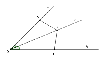 Cho góc nhọn \(xOy\) và \(Oz\) là tia phân giác của góc đó. Trên tia \(Ox\) lấy điểm \(A\) và
