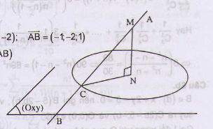 Trong không gian với hệ tọa độ Oxyz cho hai điểm A(1; 1; 2); B(0; 1; 3). Gọi C là giao điểm của đường thẳng AB và mặt phẳng (Oxy). Tìm tọa độ điểm M trên đường thẳng AB sao cho mặt cầu tâm M bán kính MC cắt mặt phẳng (Oxy) theo giao tuyến là đường tròn có bán kính bằng 2√5 .